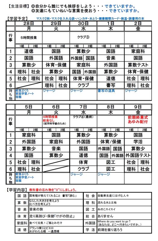 令和2年度 時間割を公開いたします 大和町立落合小学校